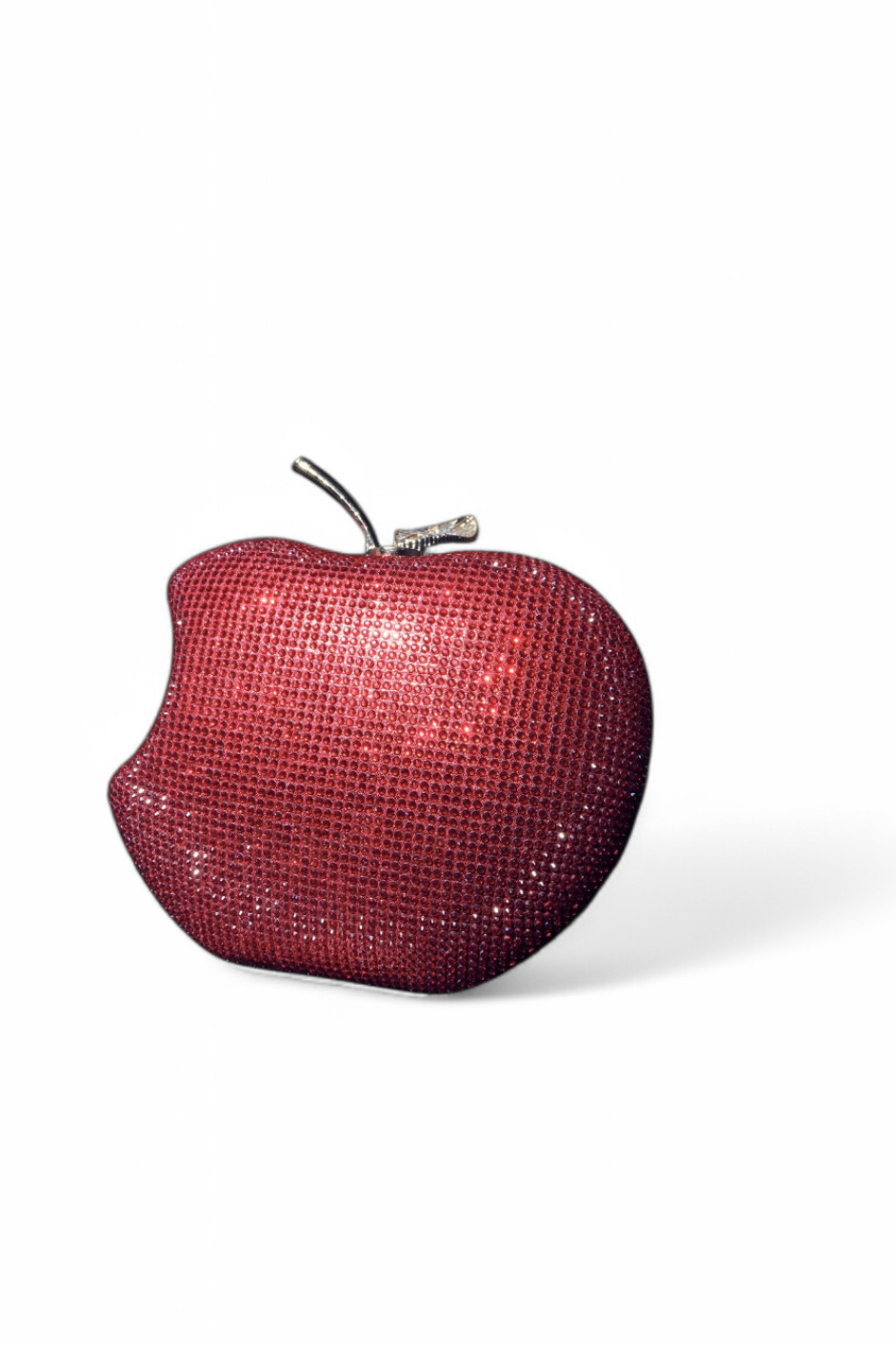 Elma şeklinde üzeri kristal taşlı mini gece çantası