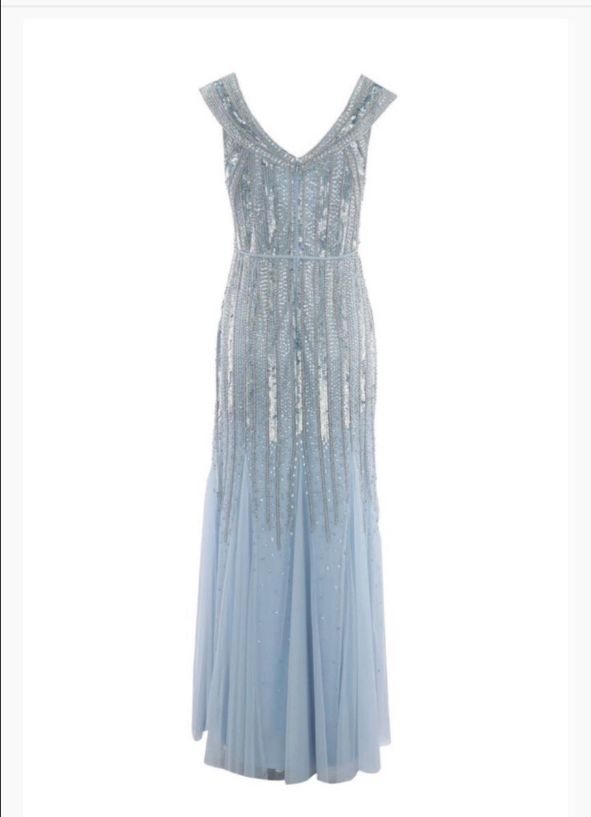 Kalın askılı payetli ve boncuk işlemeli uzun elbise