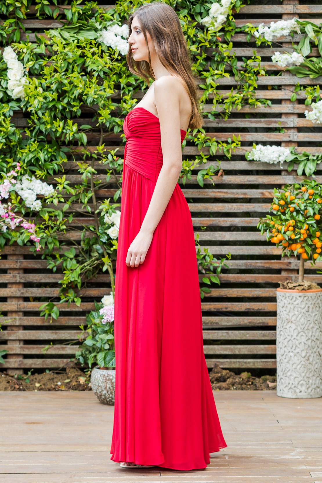 Göğüs ve Beli Drapeli Straplez Şifon Gece Elbisesi