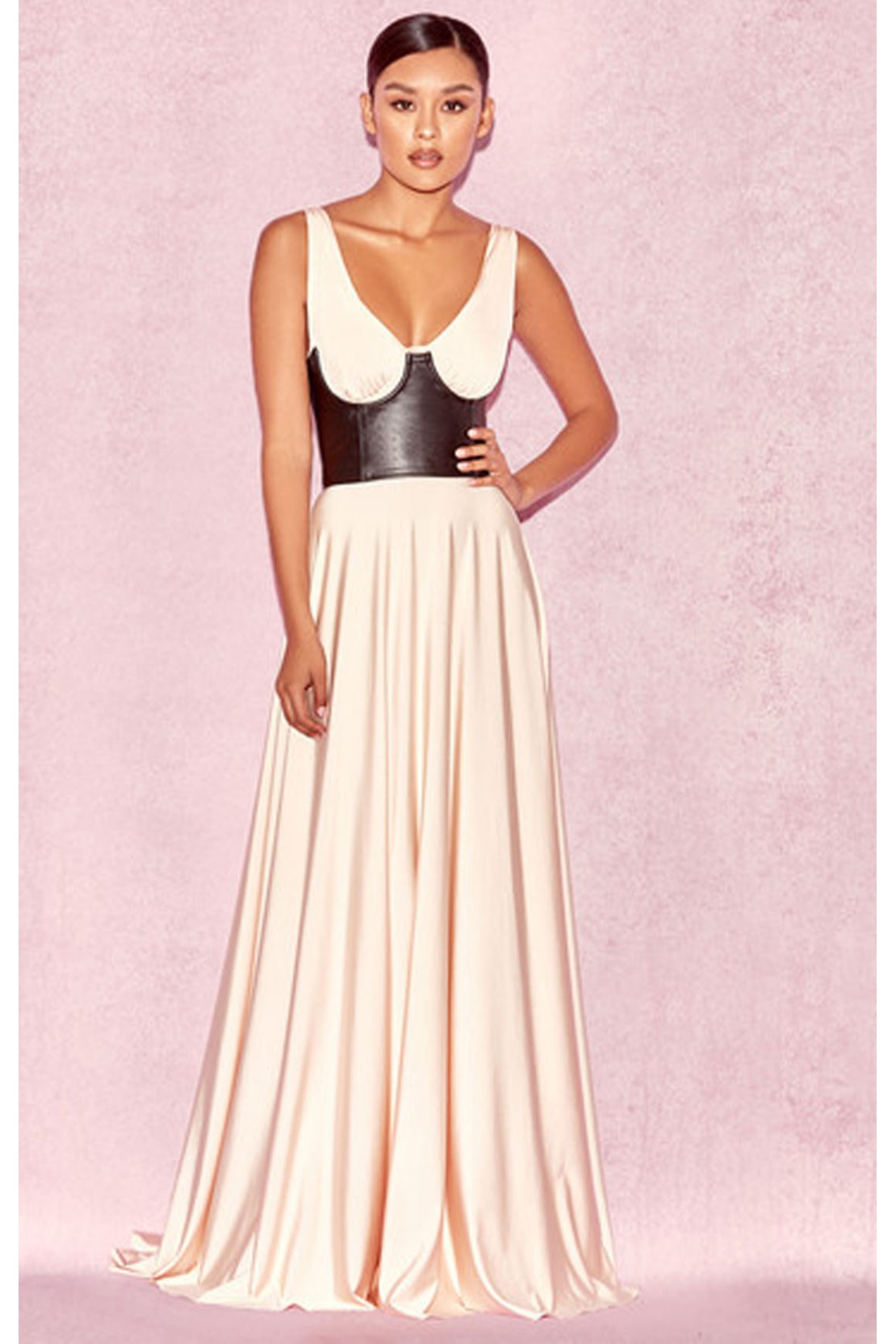 Kalın Askılı Deri Büstiyerli A Kesim Kloş Gece Elbisesi