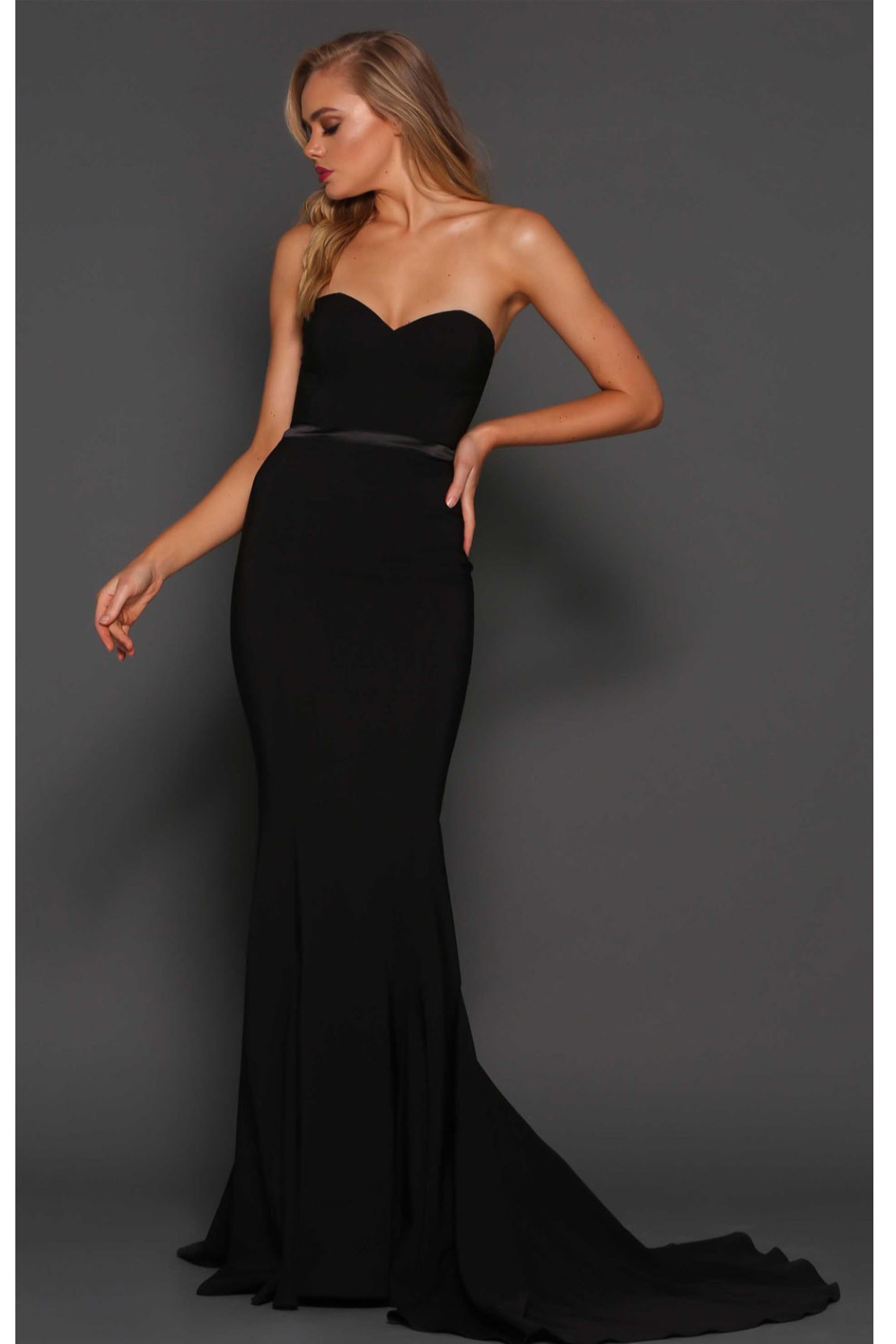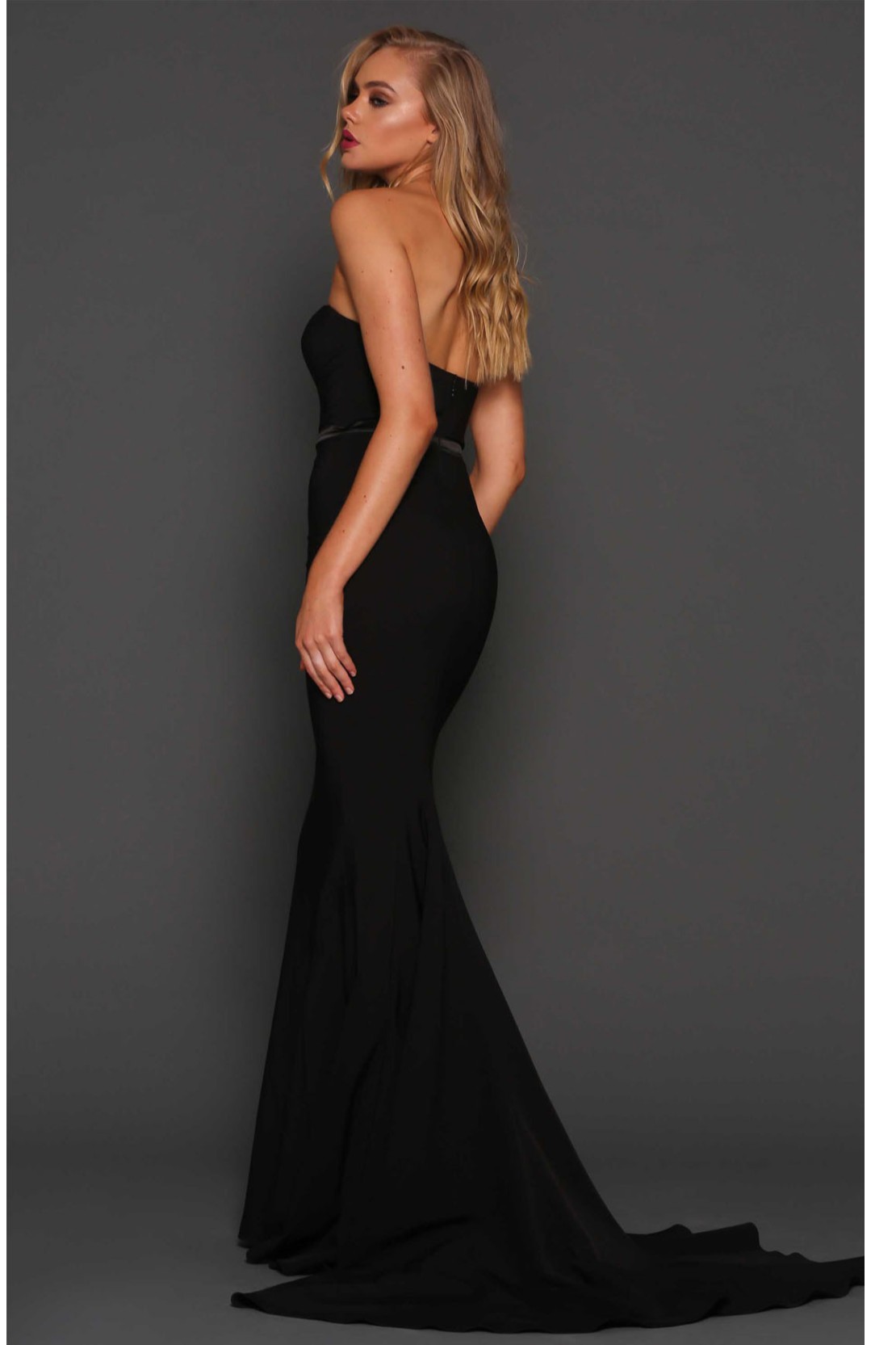 Straplez Kuyruklu Gece Elbisesi