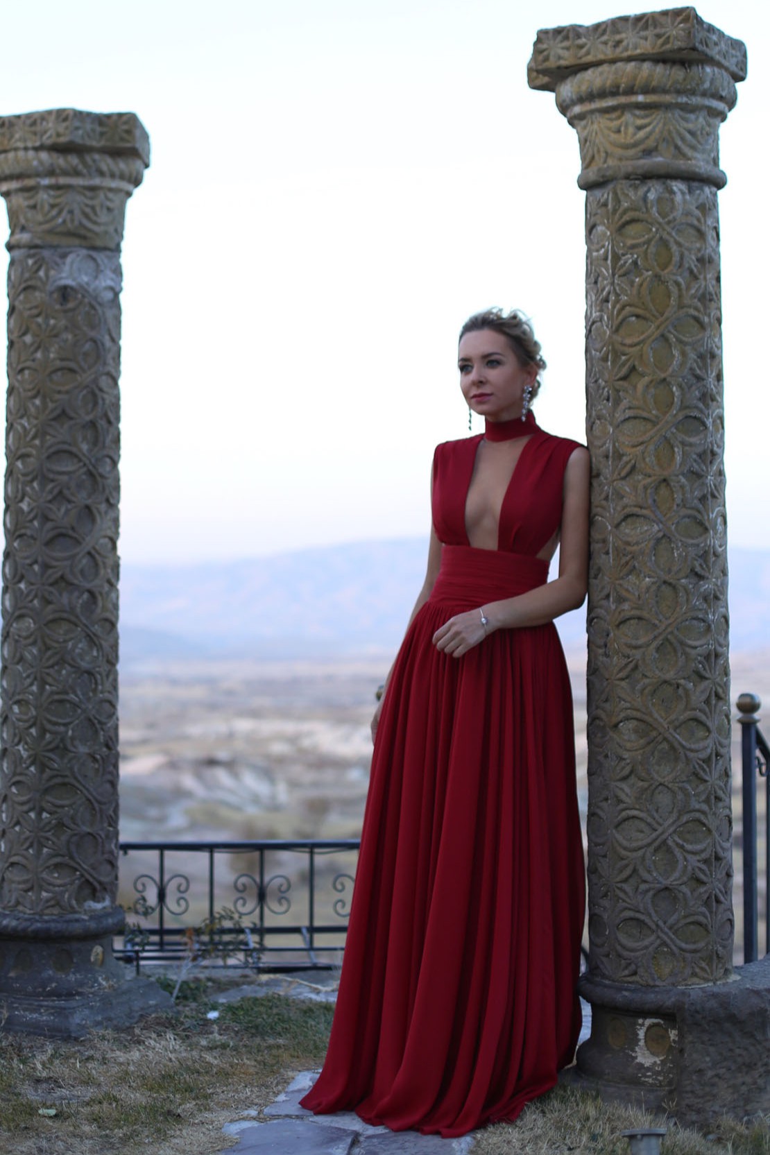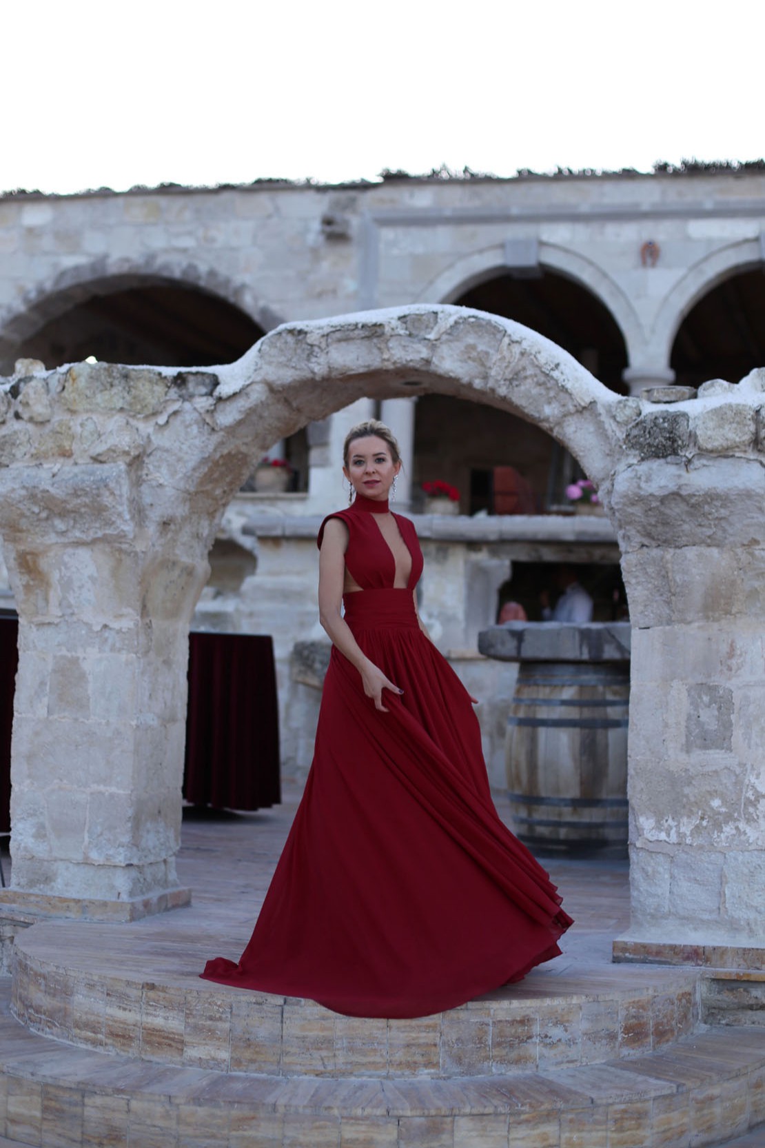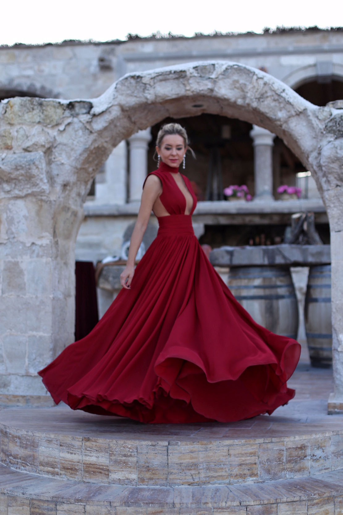 Balıkçı Yaka Derin Göğüs Dekolteli A Kesim Kloş Gece Elbisesi
