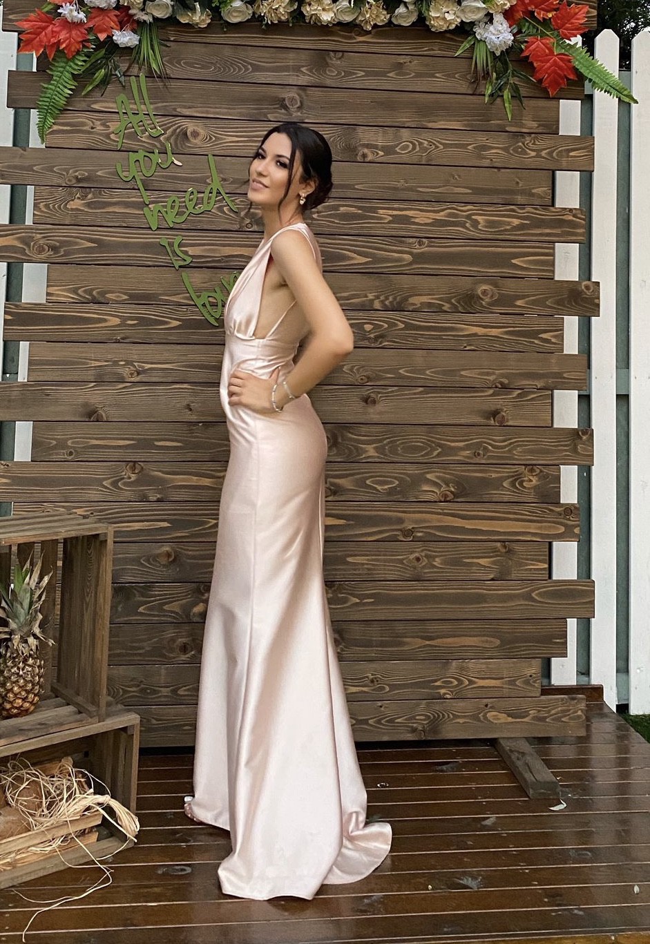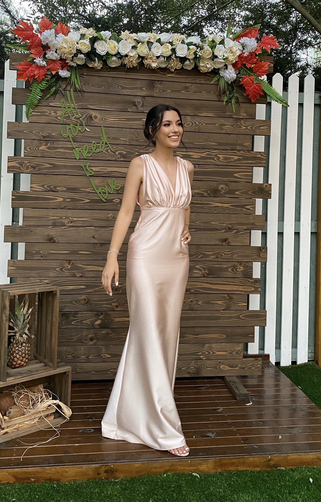 Göğüs ve Sırt Dekolteli Saten Balık Gece Elbisesi