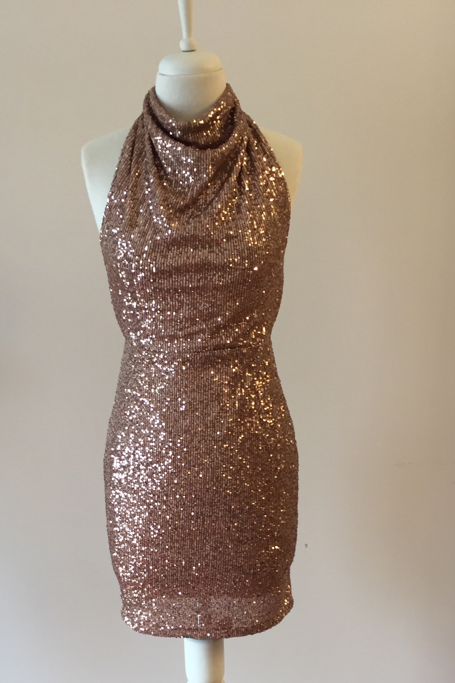 Boyundan Bağlamalı Sırt Dekolteli Payetli Mini Elbise