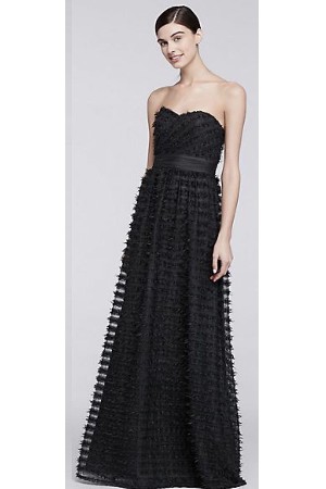 Straplez A Kesim Kendinden Işıltılı Gece Elbisesi