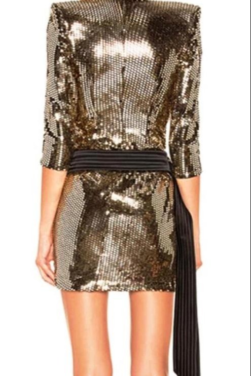 Gold ışıltısını tamamlayacak ince topuk gold, siyah, bronz renkte ayakkabılar ve sallantılı küpelerlegöz kamaştırabilirsiniz. Dirseğin hemen altında biten kol yapısıyla bileklerinize büyük bileklikler de çok yakışacaktır.