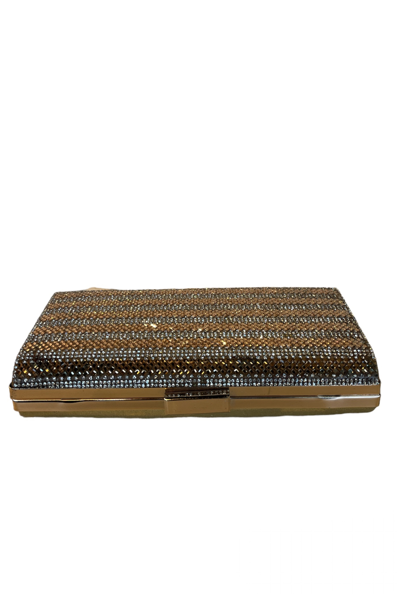 Beyaz gold ve rose taşlı zincirle de omuzda asılabilen gece çantası