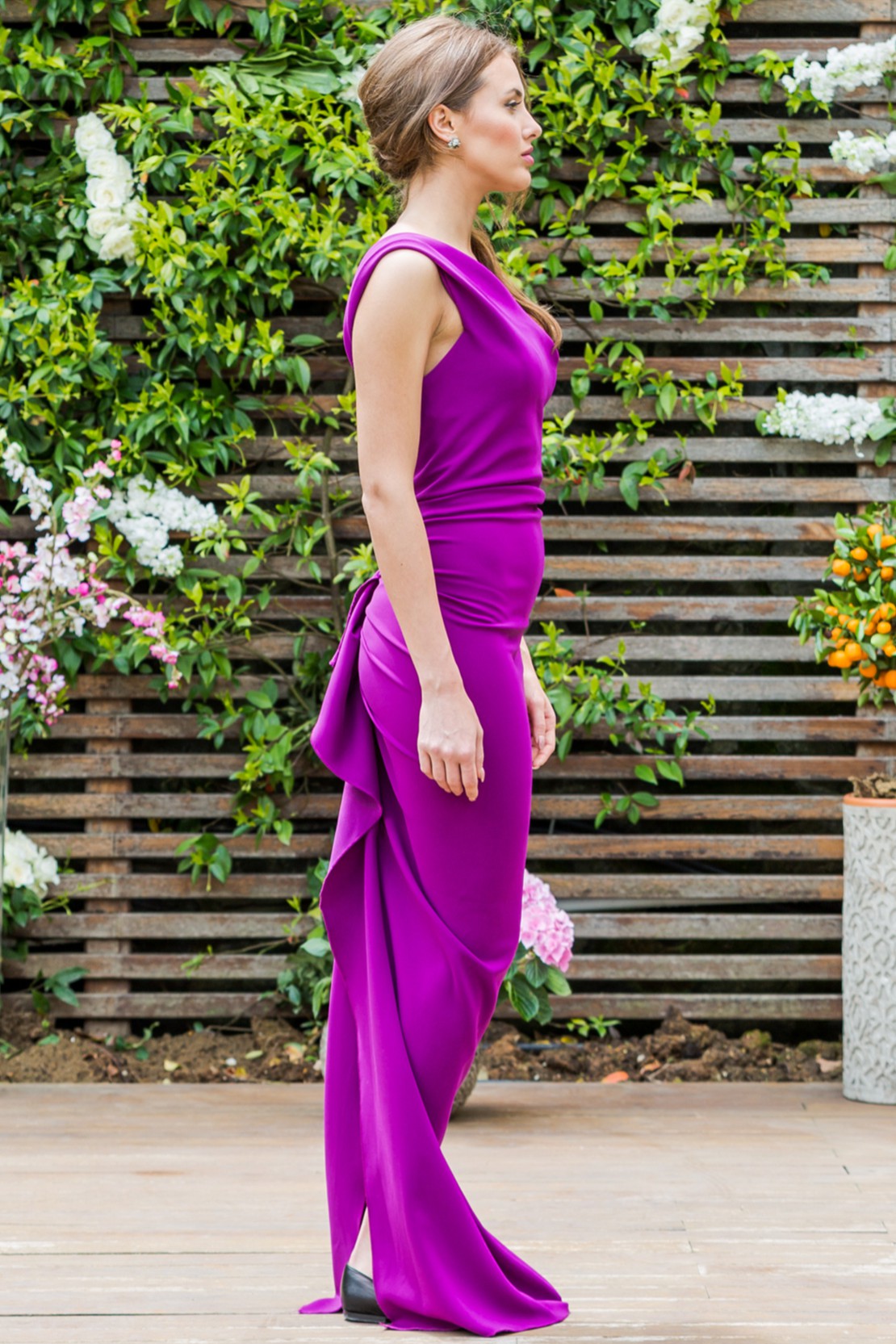 Tek Omuz Arkadan Fırfırlı ve Yırtmaçlı Gece Elbisesi