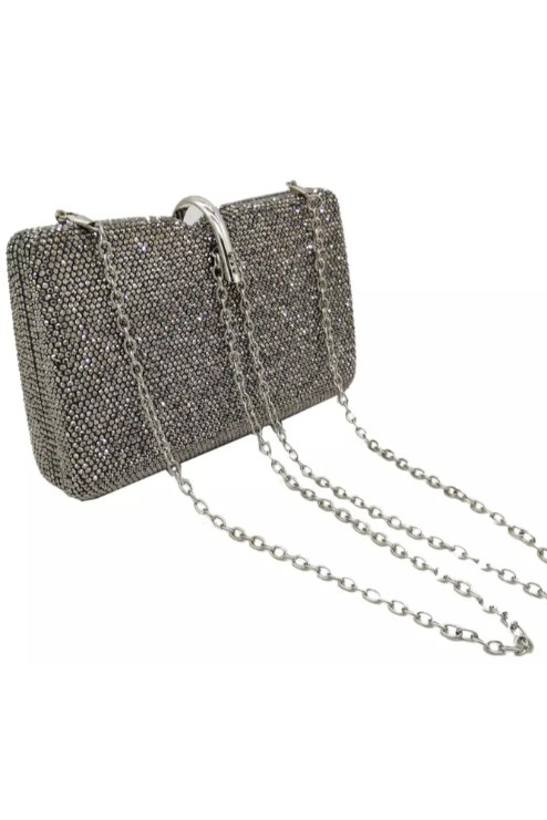 Kristal taşlı ince zincir askılı el çantası.