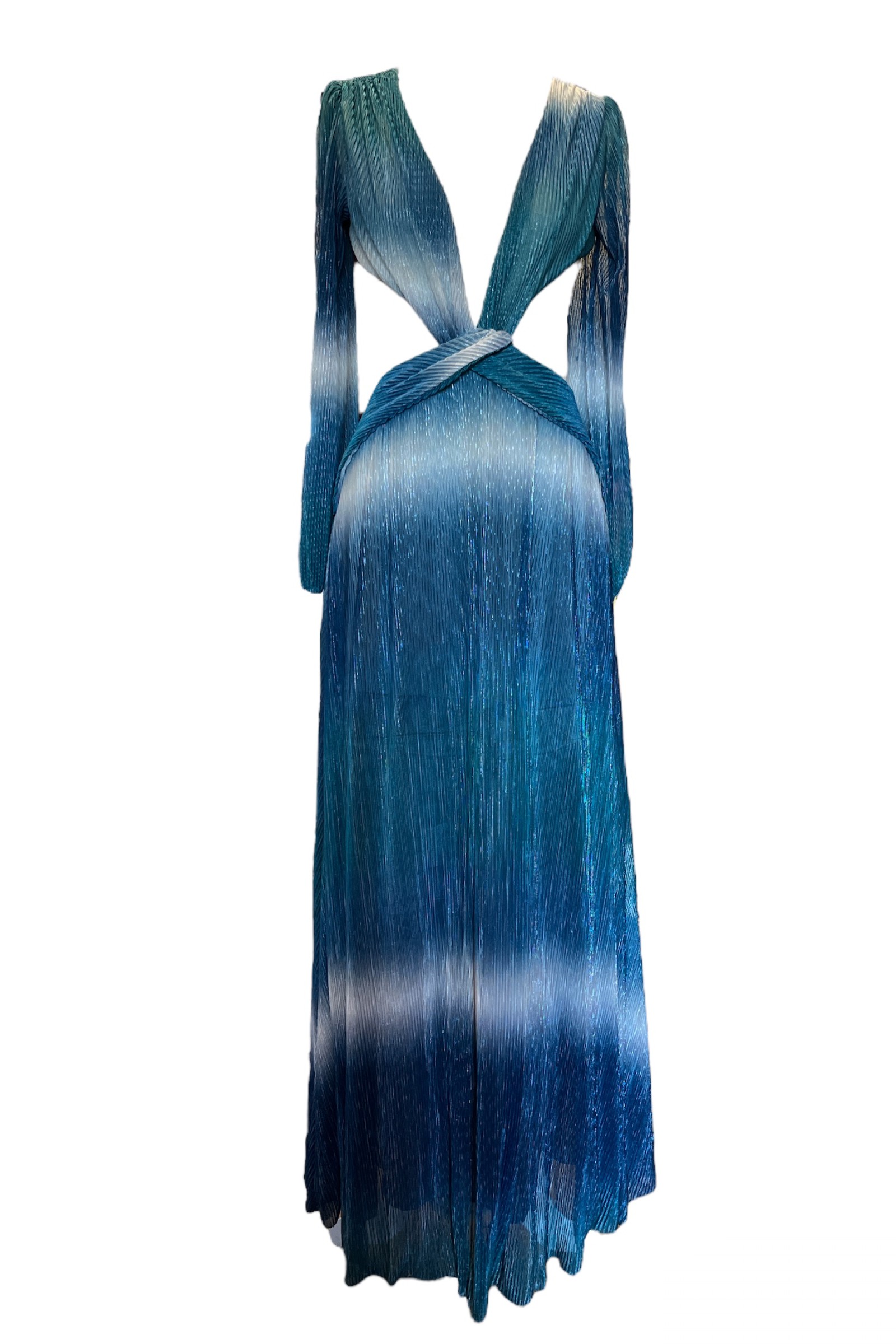 Derin göğüs dekolteli sırtı açık boyundan bağlamalı içi mini etek astarlı uzun elbise