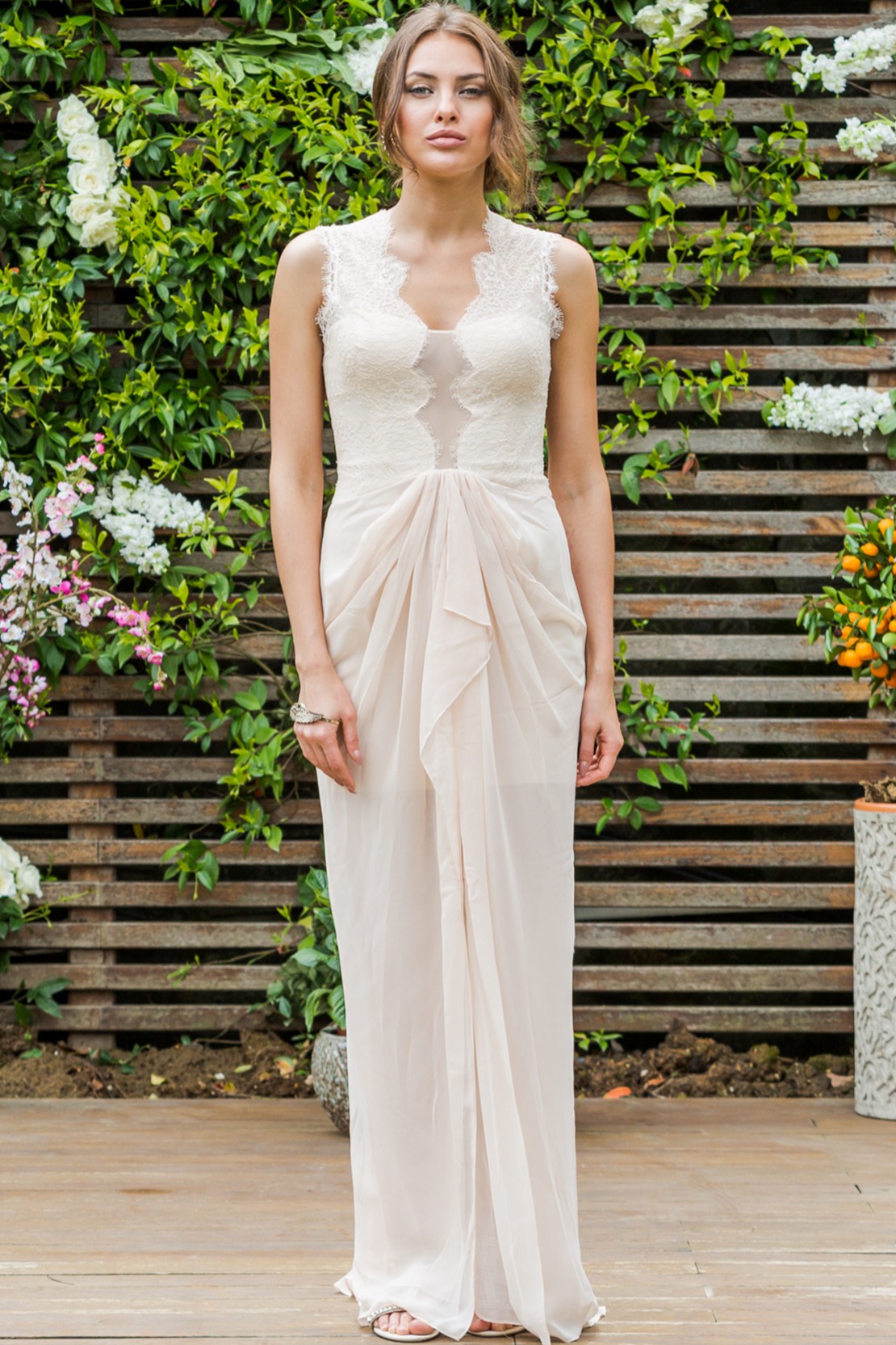 Göğüs Dantel Detaylı Önden Yırtmaçlı Şifon Gece Elbisesi