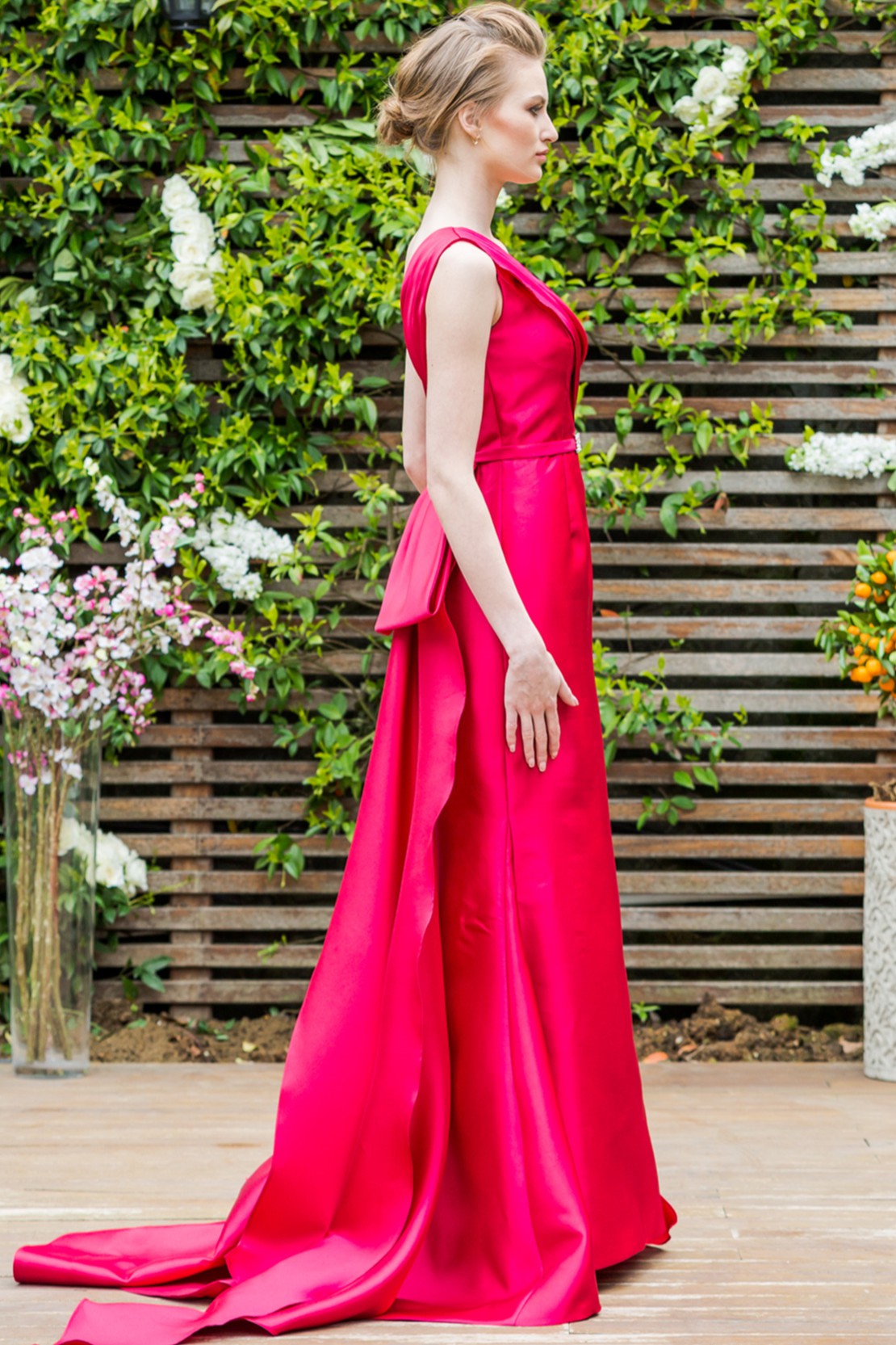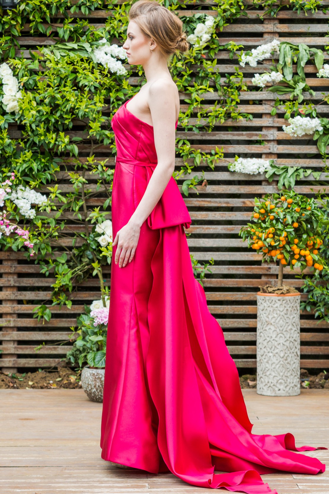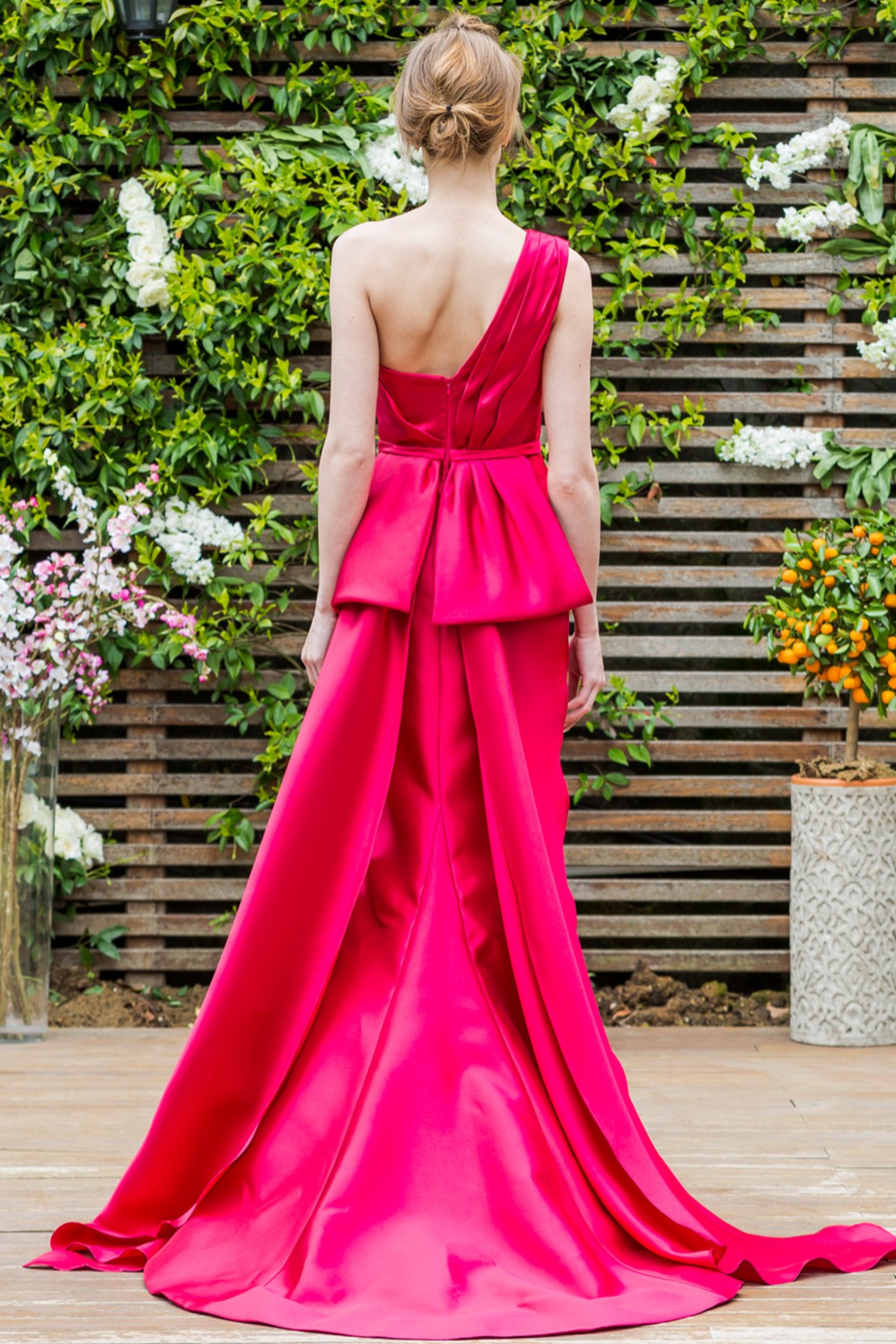 Tek omuz beli ince kemerli arkası kurdele detaylı ve kuyruklu gece elbisesi