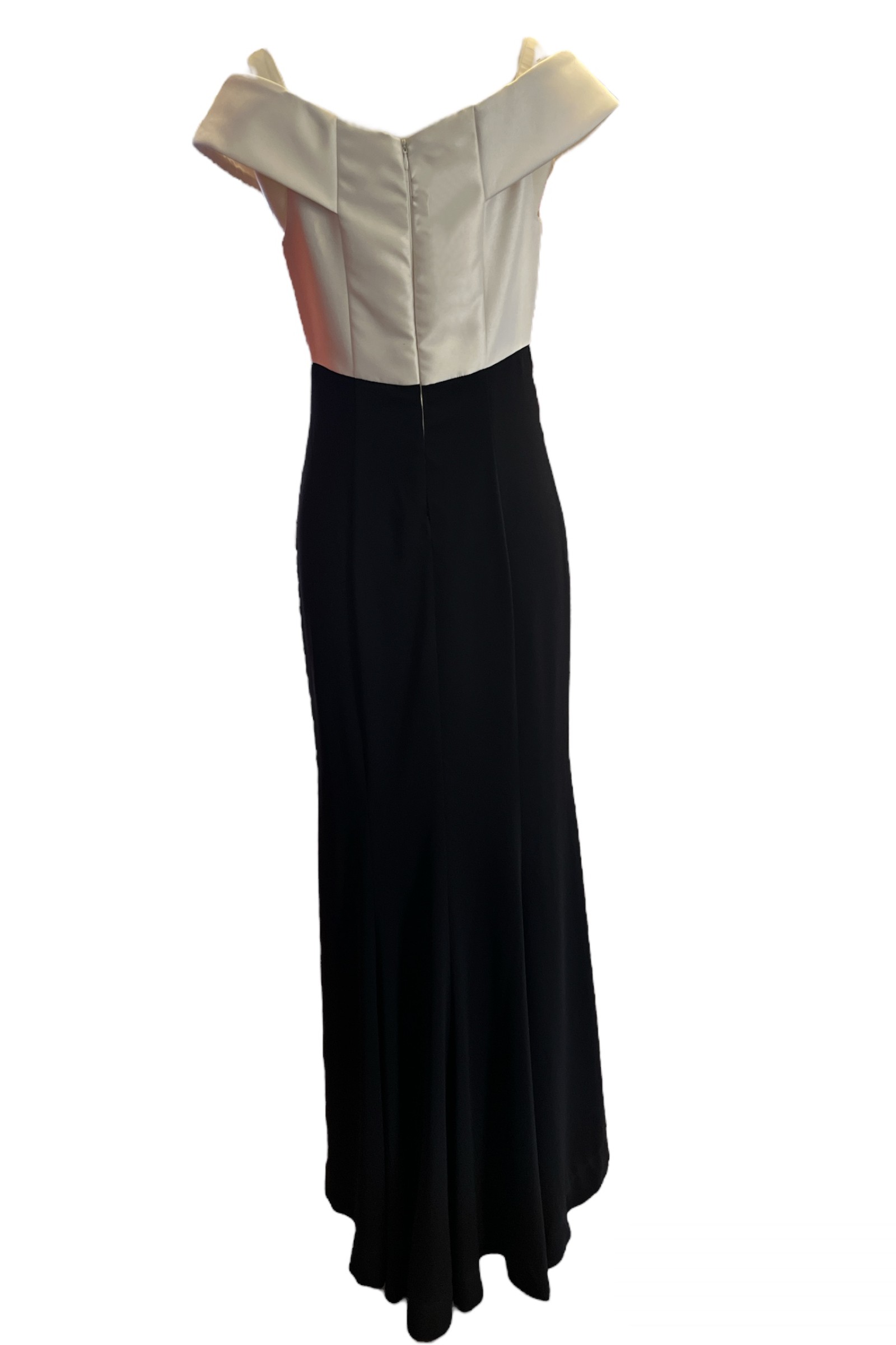 Düşük omuz üst kısmı tafta beyaz alt kısmı balık model kuyruklu uzun elbise