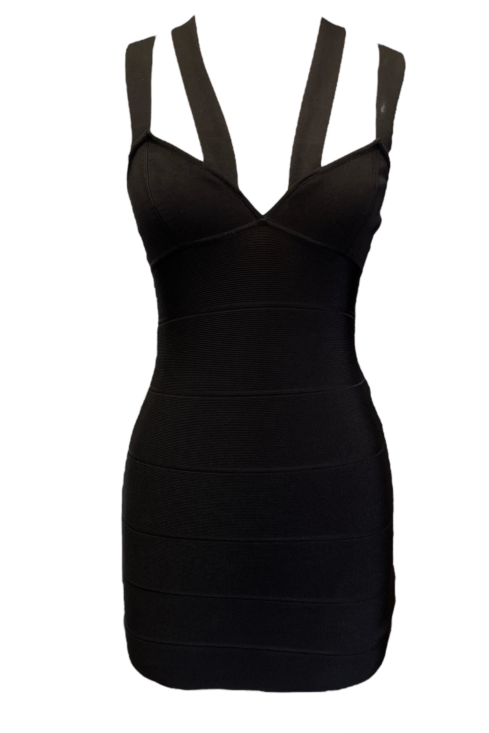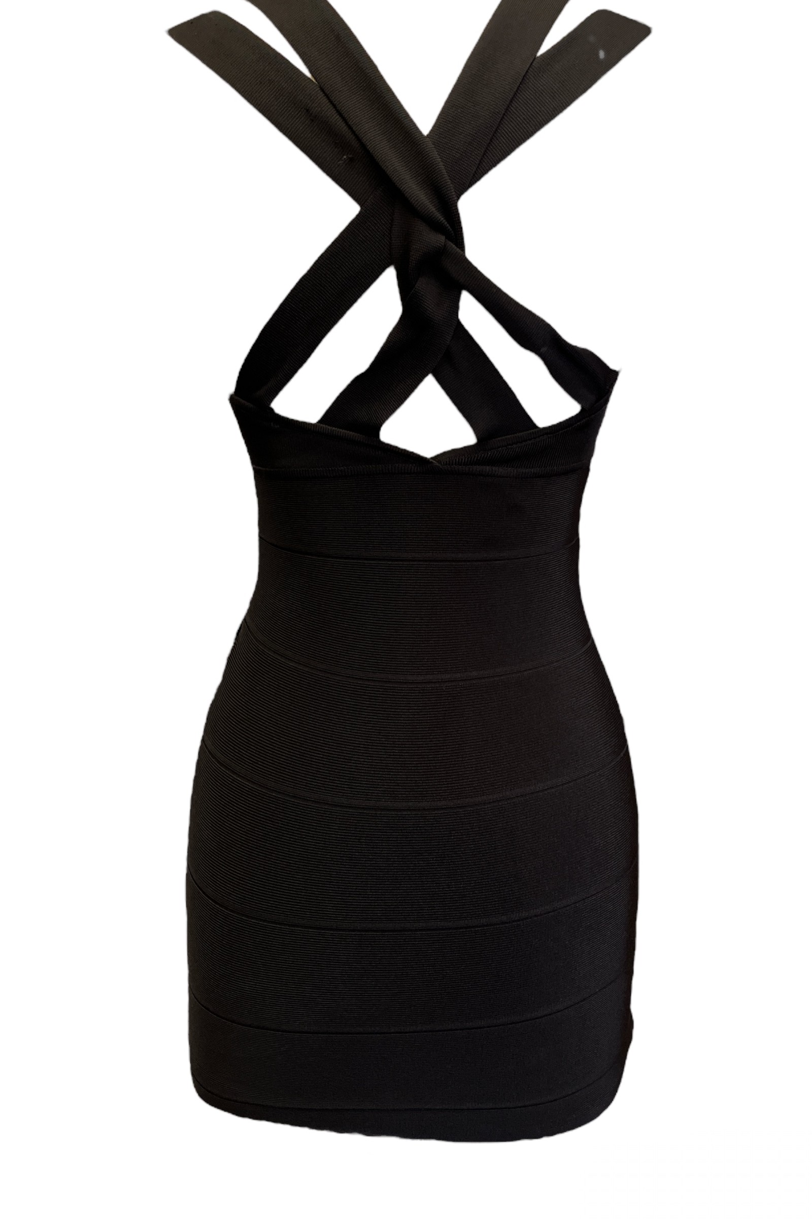 Bant askılı sırtı çapraz bantlı bandaj mini elbise