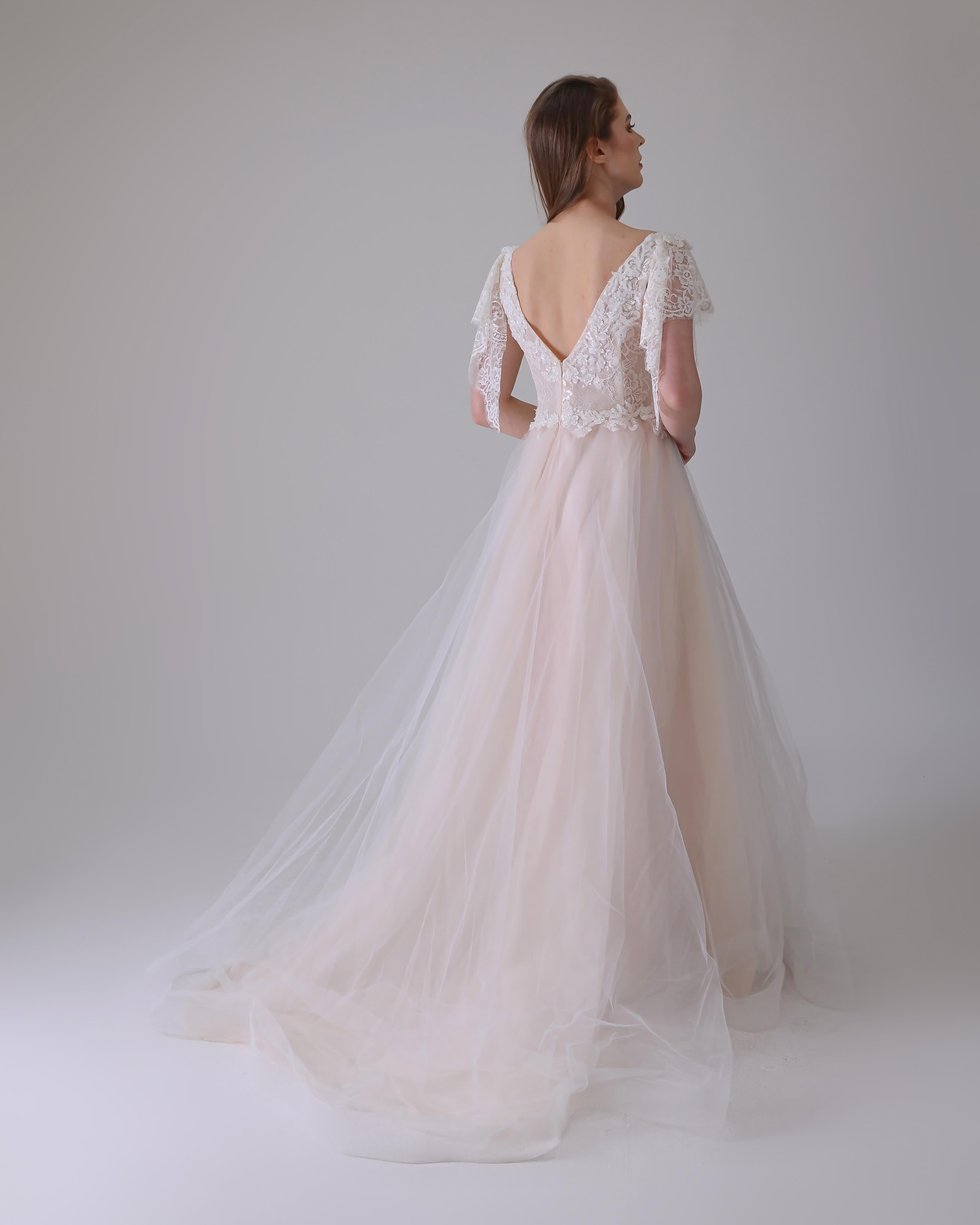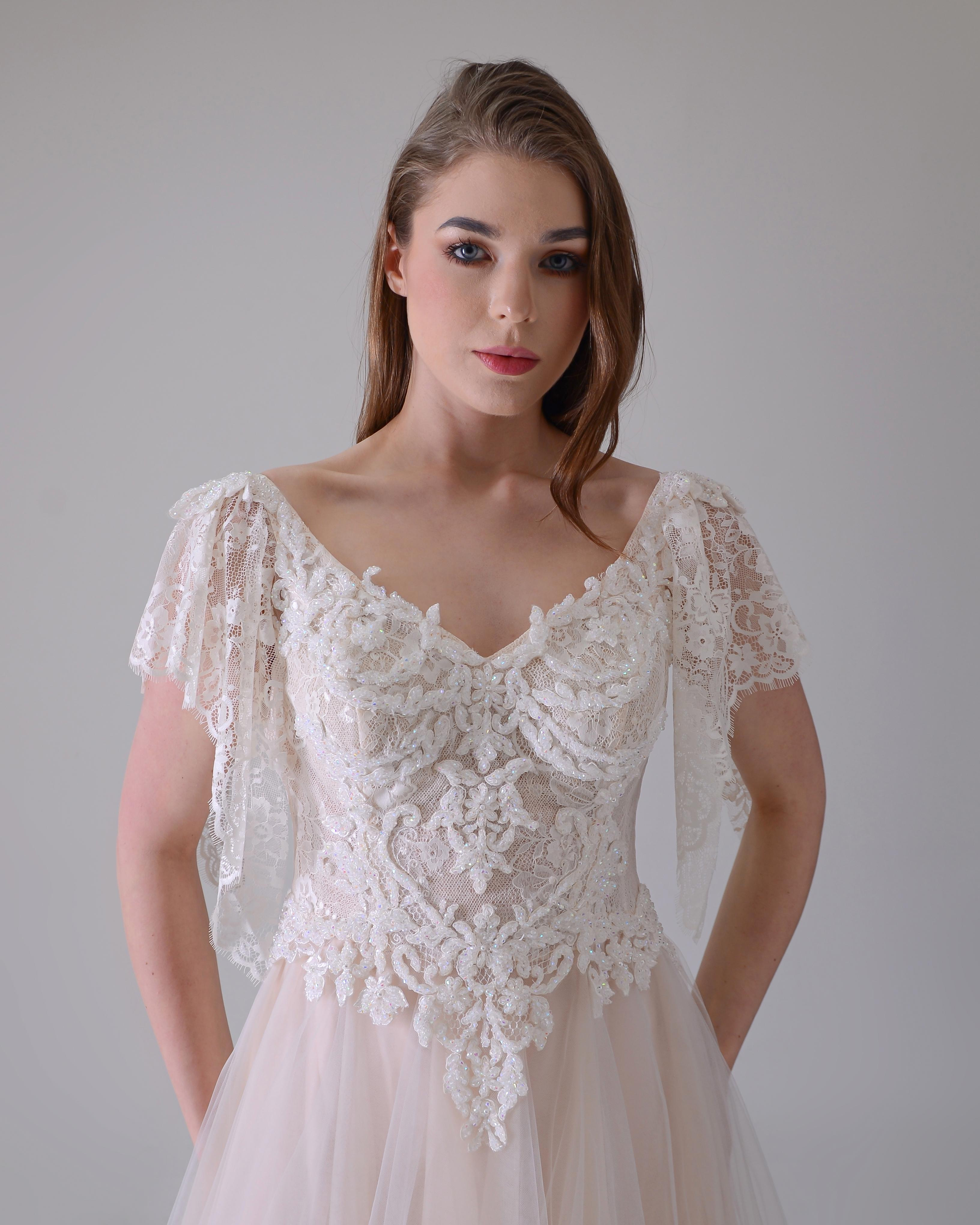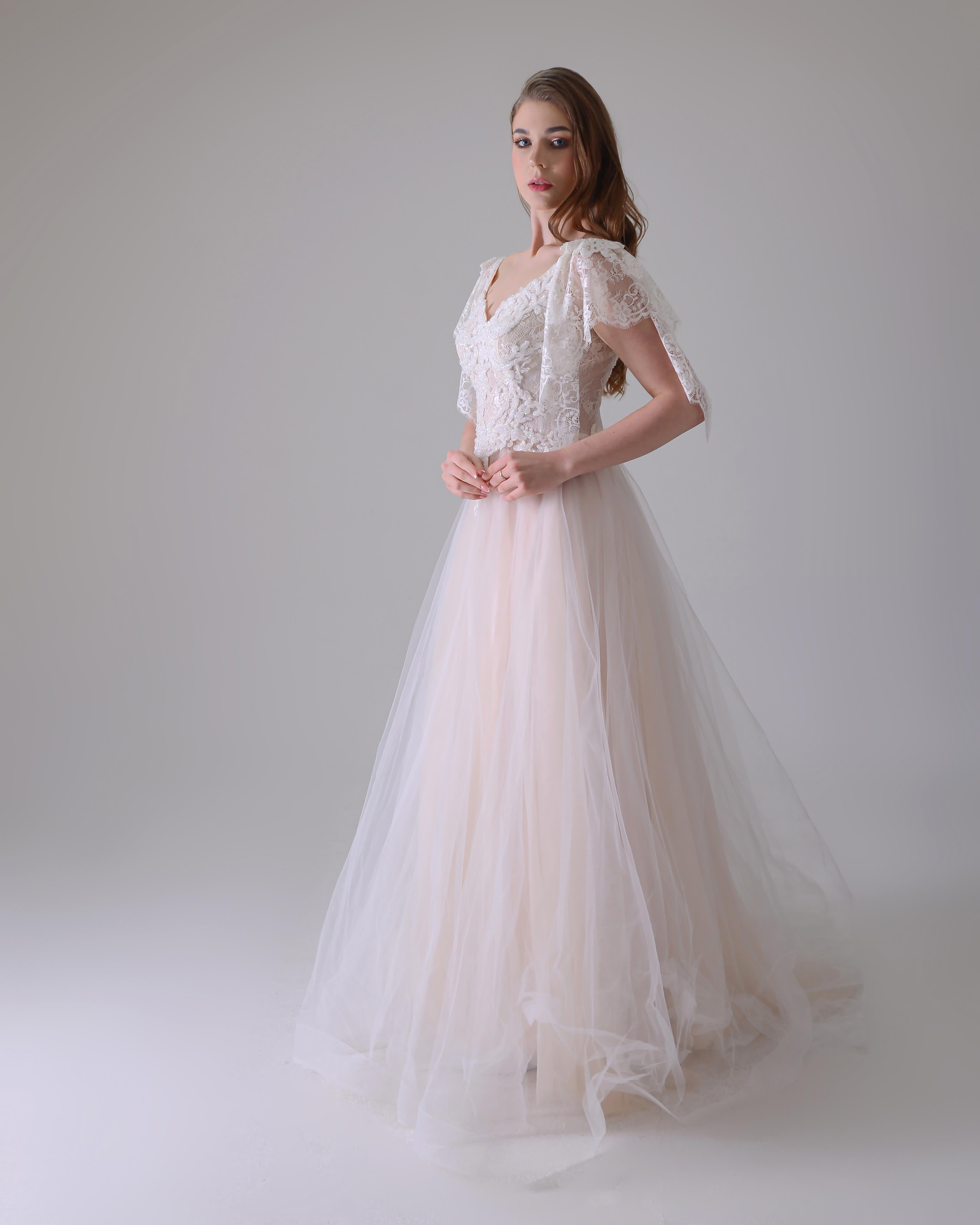 Üstü dantel işlemeli kabarık gelinlik