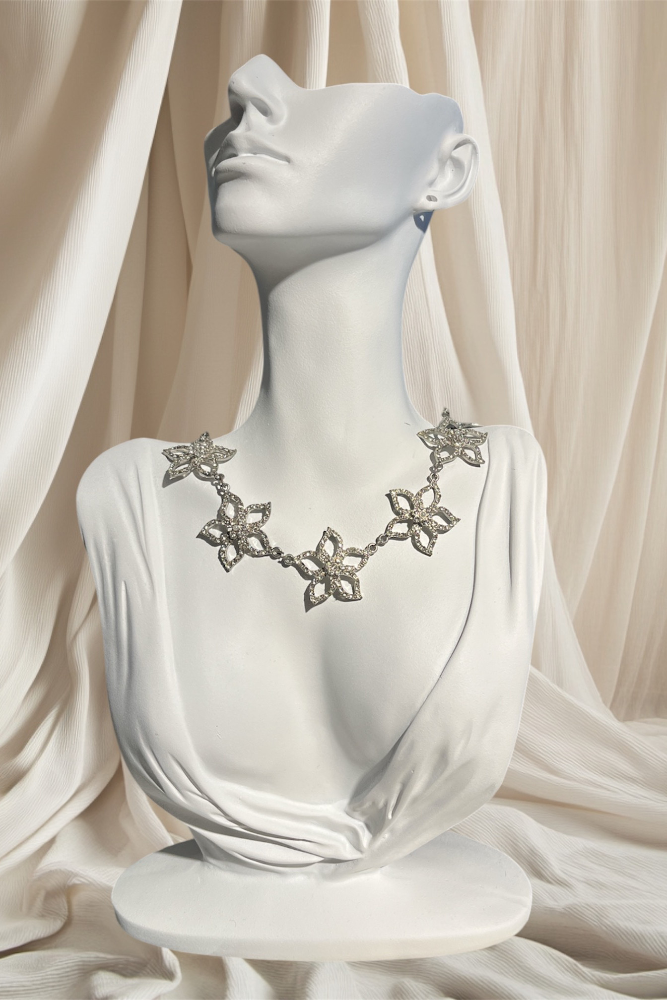 Zirkon taşlı çiçek motifli kolye